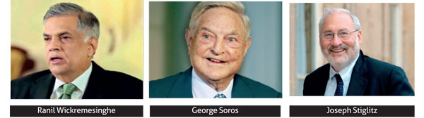 Prime Minister Hon. Prime Minister Ranil Wickremesinghe, Mr.George Soros and Prof.Joseph Stiglitz